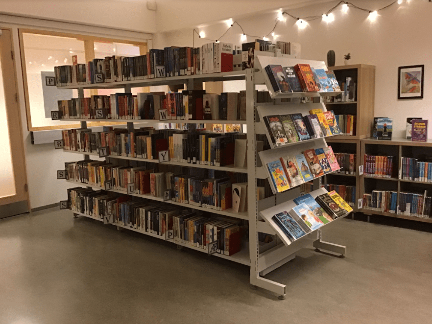 Bókasafnið er rólegur og þægilegur staður til að lesa, læra og vera með vinum. Það eru sófar, borð og skrifborð með tölvum, allt góðir staðir til að vera. Þegar þú kemur inn í bókasafnið er kona að nafni Guðný sem tekur á móti þér. Guðný getur gefið þér allar upplýsingarnar sem þú þarft að vita varðandi bækur.